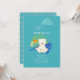 Färgad med kritor gör den finaste vita nallen. Dekorerad med enkla blommor och accentuerad med ett litet vitt moln som omger inbjudan att gå med i roligten. Ljus tealbakgrund för fram och tillbaka. Baksidan har en mönster av regndroppar. Söt för "vi kan vänta tidigt" teman eller daghem leksak eller nalle teman. Kute och färglös.