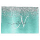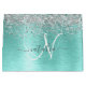 Teal Brushed Metall Silver Glitter Monogram Namn