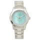 Teal Brushed Metall Silver Glitter Monogram Namn Armbandsur