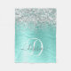 Teal Brushed Metall Silver Glitter Monogram Namn Fleecefilt