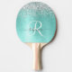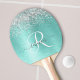 Teal Brushed Metall Silver Glitter Monogram Namn Pingisracket