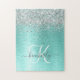Teal Brushed Metall Silver Glitter Monogram Namn Pussel