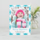 GOD JUL i ett handskrivet penselteckensnitt i tårblått accentuerat av en tealbuffelkontroll mönster. (PHOTO TIP: För snabbaste/bästa resultat väljer du ett foto med subjekt i mitten och/eller före skörd till en liknande form som den som visas före uppladdningen och fyller i det bildutrymme som visas perfekt.) Kontakta designern om du vill att designen ska ändras eller på en annan produkt.