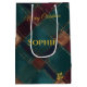Ge dina helgdag fräckt elegans med den här personligen teal, burgundi och guld-krusande julklapp. Med en sofistikerad metallinspirerad plaid med "God jul" och anpassade med mottagarens namn, tillför väskan en lyxig beröring till alla närvarande. Perfekt till dem som uppskattar snyggt och unika helgdag, så förbättrar denna hållbara påse helgdag med en personlig fläck.