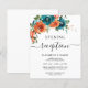 This elegant modern floral wedding invitation features hand painted watercolor flowers in teal and burnt orange with modern calligraphy script. You can personalize the wording, font style, color and size in front and back of the invitation. You are welcome to contact me for matching items.