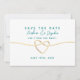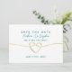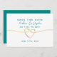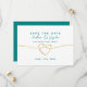 Enkelt, elegant, minimal teal- och vit Bröllop spara datum-inbjudan med enkelt handskrivet kalligrafi-skript och guld-rep-hjärta.