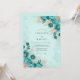 This design features a serene mint background adorned with vibrant teal anemones and delicate copper-toned leaves. The watercolor floral arrangements create a romantic and sophisticated atmosphere perfect for a seasonal event. The cool tones of the turquoise petals contrast beautifully with the warm metallic-inspired foliage for a unique botanical aesthetic.