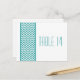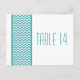 Chic och modernt vykort för Chevron Gräns Bordsnummer med ett enkelt chevron mönster gräns i turkos och vitt. Den här snyggten anger tonen för ett elegant bröllop. Enkel att anpassa, lägg helt enkelt till rätt bordsnummer i den text fält tillhandahåller. Klicka på Anpassa om du vill söka efter fler anpassningsalternativ.