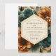 An atmosphere of vintage romance is evoked with this artistic floral arrangement, featuring a dramatic palette of deep teal and warm copper. Lush, painterly chrysanthemums bloom in abundance, their petals rendered with exquisite detail. Dark, elegant foliage weaves between the blossoms for a composition that is both opulent and timeless for your special day.