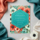 A richly detailed floral pattern bursts with vibrant coral blooms and serene teal foliage. This design evokes a romantic, artistic mood, perfect for an elegant celebration. The lush botanical arrangement creates a striking visual tapestry.