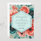 Teal Coral Rich Botanical Wedding Inbjudningar