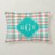 Teal Coral White Preppy Madras Monogram Prydnadskudde