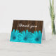 Ett tackkort från land som innehåller tealblåa daisy på en brun lada-bakgrund. Perfekt för ett westernt bröllop eller en möhippa.