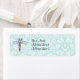 Teal Damask Pattern Dragonfly Returadress Etikett