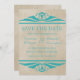 Snyggt och chic Elegant Deco Spara datum meddelande med ett konst deco-virvelformat gräns i turkos och en vintage texturerad utseendebakgrund i en mjuk beige. Det här sparar datumet då inbjudan har rustik charm samtidigt som man behåller ett vackert sofistikerat flair. Absolut perfekt för en konst deco 1920:s vintage bröllop. Enkel att anpassa, lägg bara till din bröllop-information i den text fält tillhandahåller. Klicka på Anpassa om du vill söka efter fler anpassningsalternativ, t.ex. ändra typsnitt eller färg.
