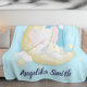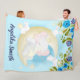 Teal Elephant Crescent Måne Personlig Namn Fleecefilt