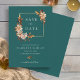 Teal Fall Watercolor Blommigt Bröllop Spara Datumet