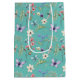 Ljust Teal Feminine Watercolor Wildblommor Mönster Medium Gift Bag. Detta är en mångsidig utformning som passar för många olika tillfällen. Denna vilda blomma mönster med fjärilar och drakflugor är söt och naturlig för alla åldrar. Spelar ingen roll i tillfälle kan du inte gå fel med den här designen och presentsäckarna. Finns i olika färger och storlekar för bakgrunden.