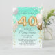 Teal Glitter Marble & Guld Balloons 40:e födelseda Inbjudningar