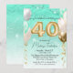 Den här 40-årsfestinbjudan innehåller ett glamoröst teal och guld. "40" trycks i guld-folie-ballonger med party-ballonger placerade på båda sidor. Bakgrunden har en övertoningsdesign med en deal glitter marble mönster i den översta delen.