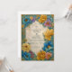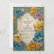 This bold botanical design features richly saturated teal, gold, and blush florals arranged in an ornate vintage frame. The textured parchment background adds an elegant antique feel, giving the layout a timeless and artistic quality. Detailed illustration, vibrant color, and soft shading create a dramatic floral border that beautifully highlights your wedding details. Personalize the wording to craft a luxurious keepsake that reflects your celebration’s unique style.