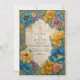 This bold botanical design features richly saturated teal, gold, and blush florals arranged in an ornate vintage frame. The textured parchment background adds an elegant antique feel, giving the layout a timeless and artistic quality. Detailed illustration, vibrant color, and soft shading create a dramatic floral border that beautifully highlights your wedding details. Personalize the wording to craft a luxurious keepsake that reflects your celebration’s unique style.