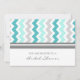 Inbjudningskort för möhippa i elegant turkosa akvafblått, grått och vit retro och avslappnad chevron zigzags rand mönster, chic och feminin, anpassade med duschdetaljer. Finns också i tackkort och inbjudningar till brudens sida.