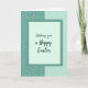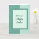 This design shows a tall, serene layout with the background split into two vertical panels that feel like they lean gently toward each other, like close friends sharing a quiet moment 🌷. The left panel is a deep teal with an organic, textured pattern that suggests woven fabric or a natural mosaic. The right panel shifts to a lighter mint green with soft mottling, like dappled light across a calm wall. A thin, muted teal border frames a pale aquamarine rectangle in the center, keeping everything neatly aligned. Centered inside that light rectangle is a flowing, cursive-style greeting in a dark teal tone, sized to stand out without crowding the space 🐰. The lettering sits comfortably in the middle with generous margins, giving the message room to breathe against the airy background. Along the edges, the deeper teal texture on the left contrasts with the smoother mint surface on the right, while the central frame stays crisp and evenly spaced.