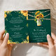 Teal Green Sunflowers Mason Jar QR Code Wedding Inbjudan
