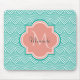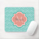 Teal Grönt Art Deco Fish Scales Rosa Monogram Namn Musmatta