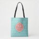 Teal Grönt Art Deco Fish Scales Rosa Monogram Namn Tygkasse