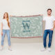 Teal Grönt Botanical Löv Monogram Filt