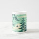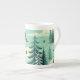 Teal Grönt Forest and Birds Mönster Benporslin Mugg