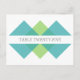 Modern och chic Geometric Triad Bröllop-vykort för Bordsnummer med en snyggt triangeldesign i turkos- och kalkgrön. Den här enkla och enkla utformningen av eleganten kan vara personlig genom att lägga till rätt bordsnummer i fält. Klicka på Anpassa om du vill söka efter fler anpassningsalternativ.