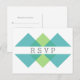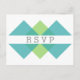 Modern och chic Geometric Triad-Bröllop OSA-vykort med en snyggt triangeldesign i turkos- och kalkgrön. Den här enkla och enkla utformningen av eleganten kan vara personlig med dina bröllop-uppgifter. Klicka på Anpassa om du vill söka efter fler anpassningsalternativ.