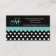 Teal Grönt Monogram Black White Polka Dot Visitkort