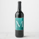 Teal Grönt Monogram Girly Script Metallic Steel Vinflaska Etikett