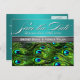 Teal & Grönt Peacock Bröllop spara datum Meddelande Vykort