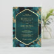 Teal Guld Abstrakt Fluid Bläck Photo Bröllop Inbjudningar