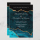 Teal Guld Glitter Agate Geode Bröllop Inbjudningar
