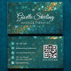 Befordra dina tjänster för massageterapi med det här lyxteal-affärskortet med accenter från elegant glitter, en opalinspirerad detalj och en byggt QR-kod. Klienter kan omedelbart söka efter avtalade tider i bok, utforska tjänster eller följa hälsa-onlinen. Designad för massageterapeuter, spa-ägare och semesterutövare, balanserar denna glamorösa men lugnande layout lyxen med professionalism - att hålla ditt namn, din titel och din kontaktinformation klar och tryckt redo.