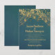 Elegant bröllop inbjuds med vackra glittery guld-stranden ljus och mousserande bokeh på en djärv tealbakgrund.