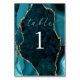 Teal & Guld marble Agate Bord Card Bordsnummer