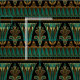 Denna vackra, unika Art Deco-design är egyptisk inspirerad och omfattar geometriska och fläkt inslag med vibrerande färger av teal, guld och svart.