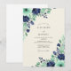 This design features a harmonious blend of teal and navy blue watercolor flowers set against a soft cream background. Elegant eucalyptus leaves and delicate berry sprigs accent the composition, creating a serene and polished aesthetic. Ideal for a seasonal event, the palette offers a refreshing take on traditional botanical styles.