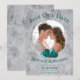 Meddela din bröllopsdag till vänner och familj med detta Teal Hearts Foto Spara Datum. Tillkännagivandets design har en fotoutformning av det lyckliga paret prydd med två hjärtan, ren textdesign och marmorerad bakgrund med ett matchande marmormönster på baksidan.