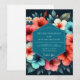 Evoking tropical paradise, this design features vibrant teal, coral, and white hibiscus blooms amidst lush dark foliage. The mood is lush and romantic, perfect for a destination or summer celebration.
