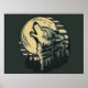 This striking artwork features a textured howling wolf illustrated in gray and teal shades, set against a stylized cream moon with bold teal stripes. Below the moon lies a detailed forest silhouette that completes the wild, atmospheric scene. With its limited vintage-inspired palette and dramatic composition, this design is perfect for nature lovers, wolf fans, and anyone drawn to bold wilderness aesthetics.