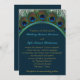 Teal, inbjudan till Guld Peacock Feathers bröllop