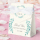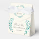 Vackra teala löv-vindruvor som ligger runt bröllop pars initialer på detta vackra elfenben bröllop tackar er för att ni föredrar en låda för gäster vid mottagningen. En klassvis turkos söker efter ett badbröllop nära havet och kombinerar ett motiv utomhus med elegant-typografi för en söt sommarceremoni.
